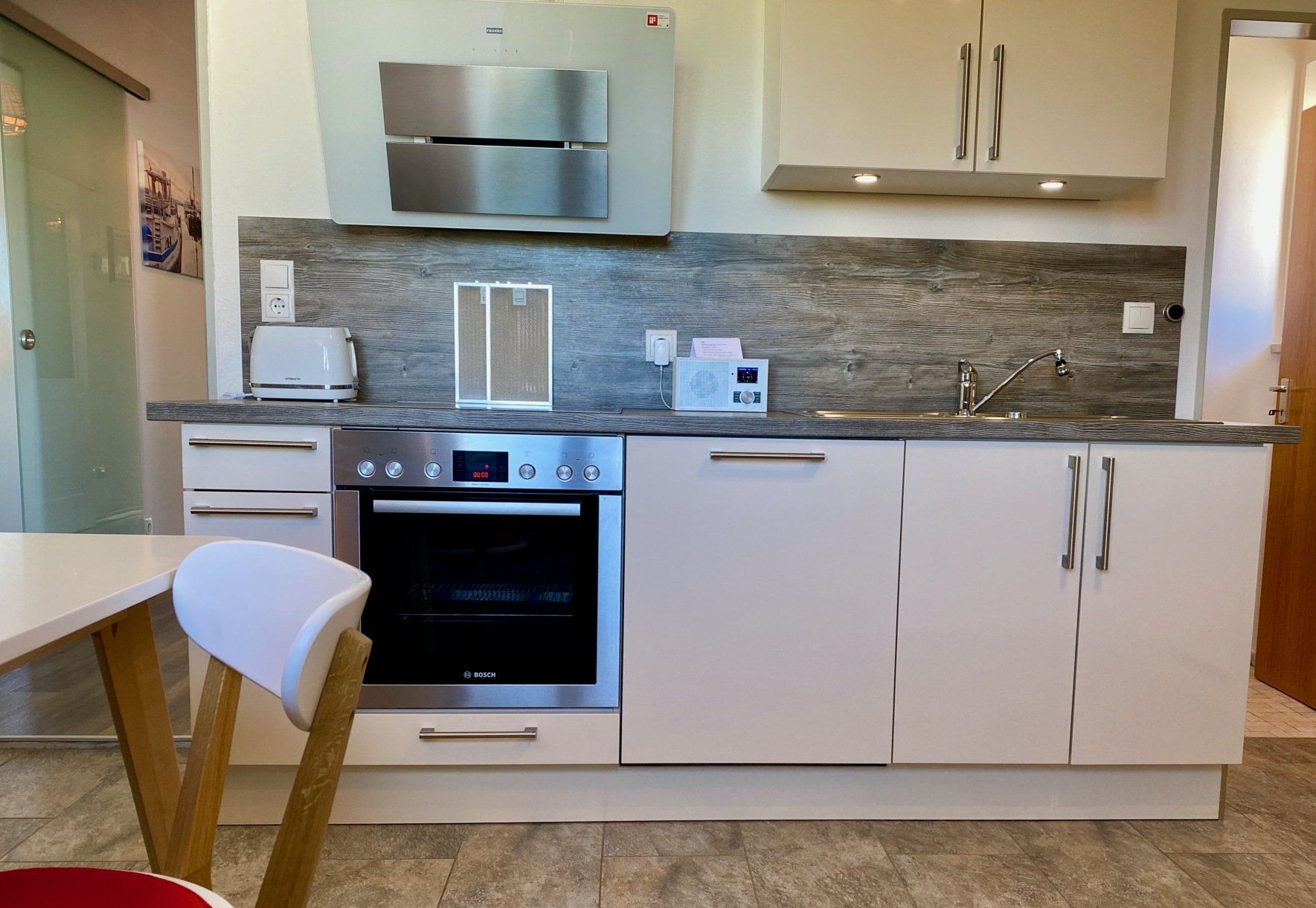 Unsere großzügige FeWo wurde 2019 renoviert. Alle Möbel sind neu bzw. neuwertig. Die Küche ist modern eingerichtet mit Spülmaschine, Kühl-Gefrierkombination, Kaffeemaschine usw.